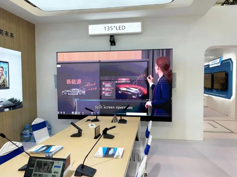 另外,G22恒峰展示的智慧会议方案,集LED折叠升降一体机,会议终端,高清摄像头及会议软件于一体,方便快捷。