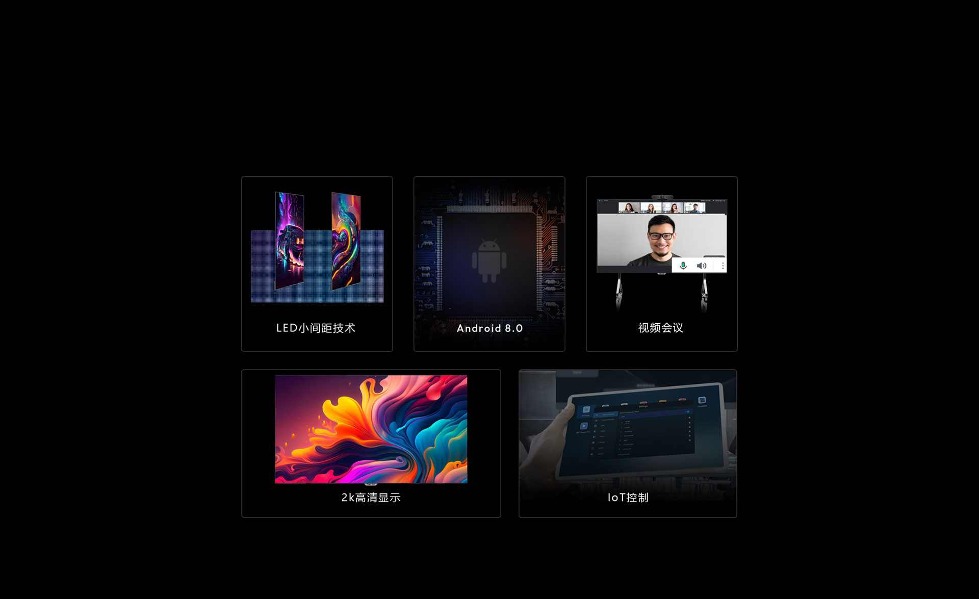 集成LED 小间距技术、高清显示,安卓,视频会议,移动控制等为一体。